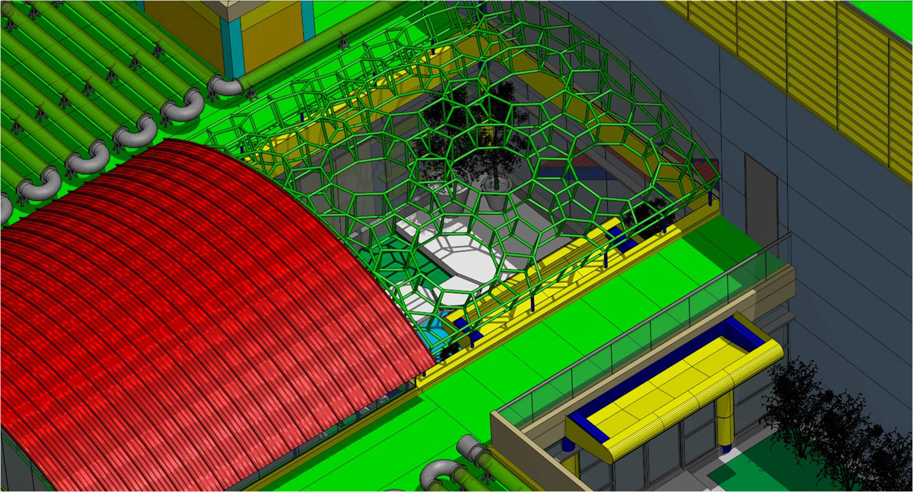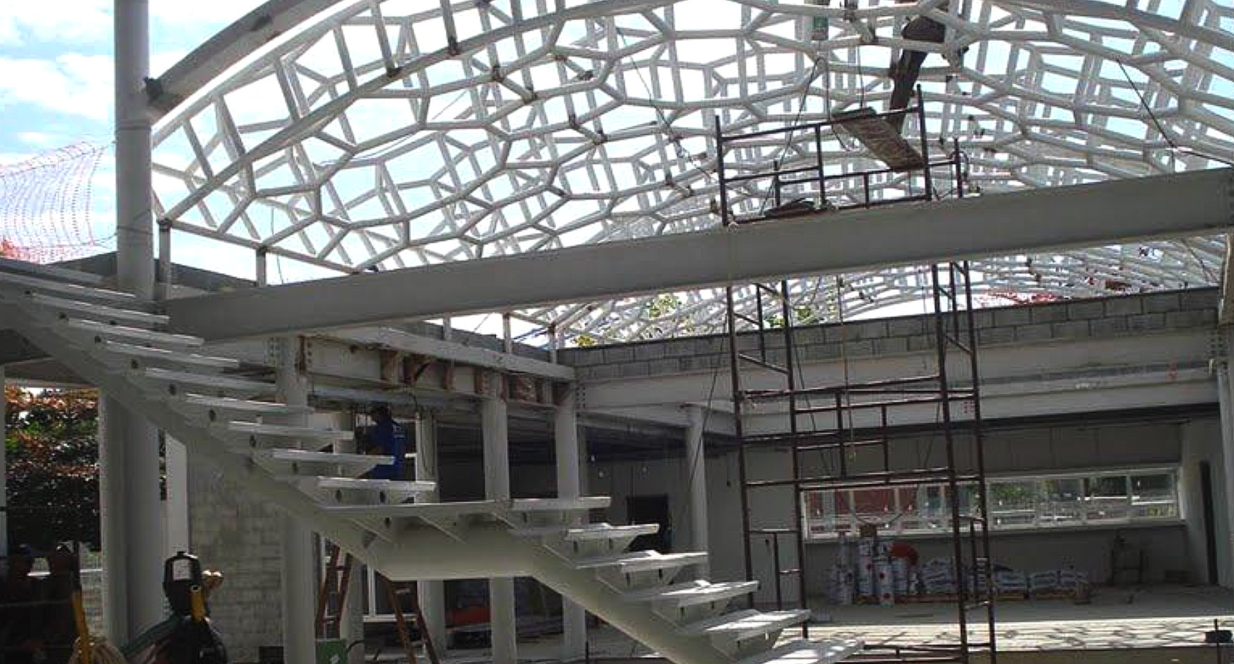 Além desse sistema, temos o projeto desenhado com entradas de luz por uma das faces do shed de cobertura e outra para a saída de calor com o ar quente que sobe por convecção.
